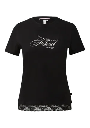QS Shirt blauw / donkerroze / zwart / wit