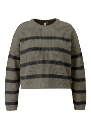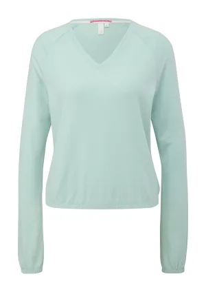 QS trui met wol rib gebreid blauw