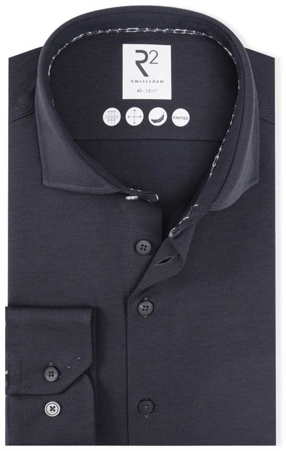 R2 Amsterdam Modern Fit Overhemd Marine, Motief