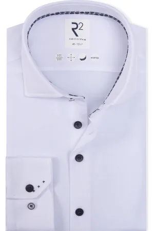 R2 Amsterdam Casual hemd lange mouw Wit Solid dobby knitted 130.WSP.001/004