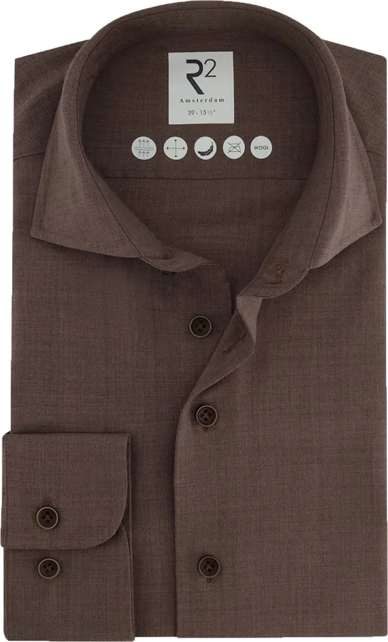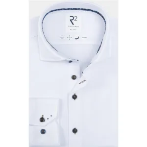 R2 Amsterdam Casual hemd lange mouw Wit Solid dobby knitted 130.WSP.001/004