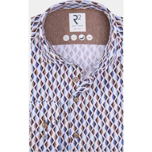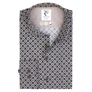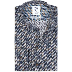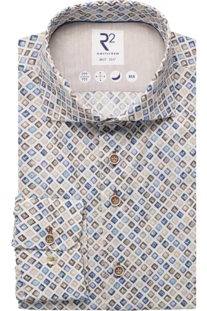 R2 Amsterdam Casual hemd lange mouw Beige Light blue beige retro print 130.WSP.029/045