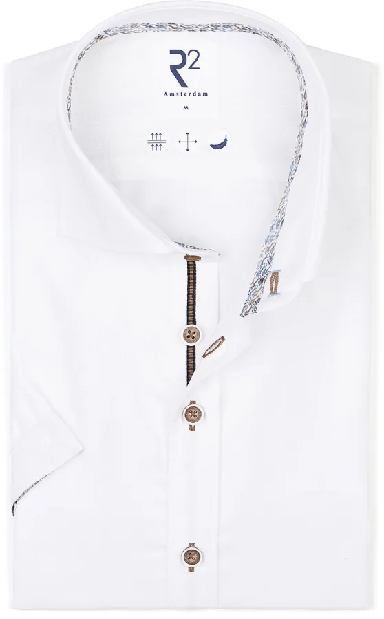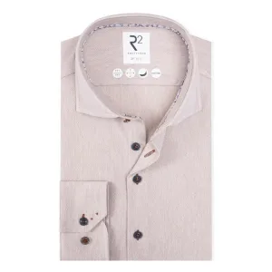 R2 Overhemd Korte Mouwen Knitted Piqué Beige