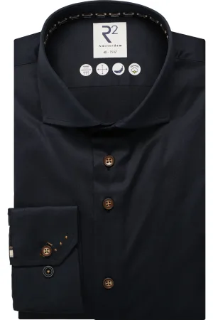 R2 Amsterdam Modern Fit Overhemd marine, Effen