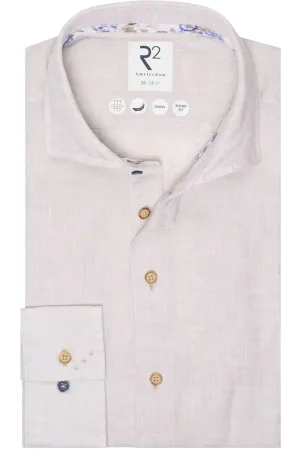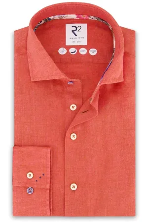 R2 Amsterdam Modern Fit Linnen Overhemd oranje, Effen
