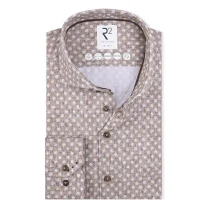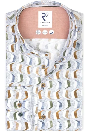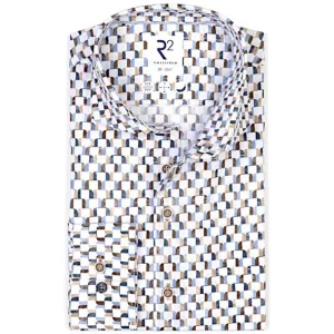 R2 Overhemd Poplin Graphical Print Beige Blue