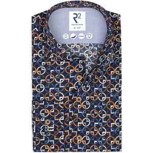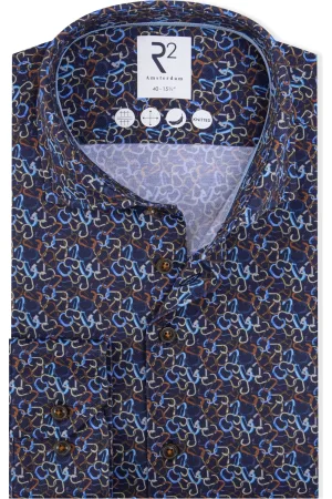 R2 Amsterdam Modern Fit Overhemd Marine, Motief