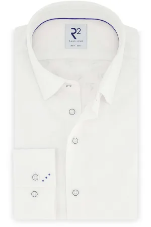 R2 Amsterdam Casual hemd lange mouw Wit Solid dobby knitted 130.WSP.001/004