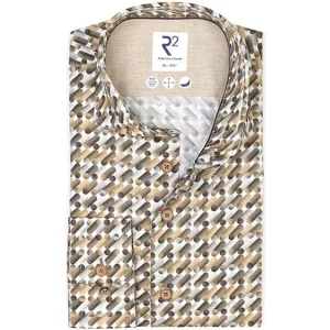 R2 Amsterdam Overhemd lichtbruin, Bedrukt