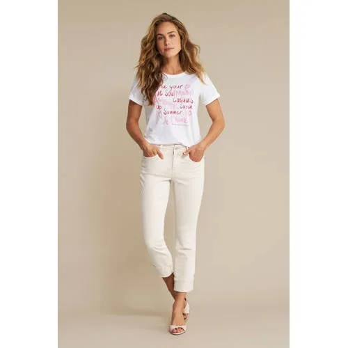 Red Button Skyler Linen/visco Srb4863a T-shirt Korte Mouw Off White