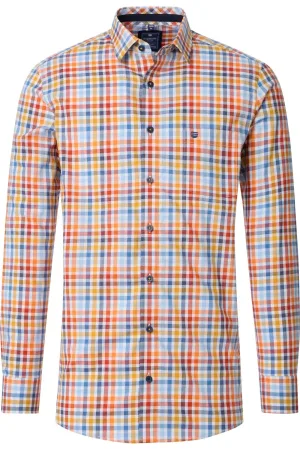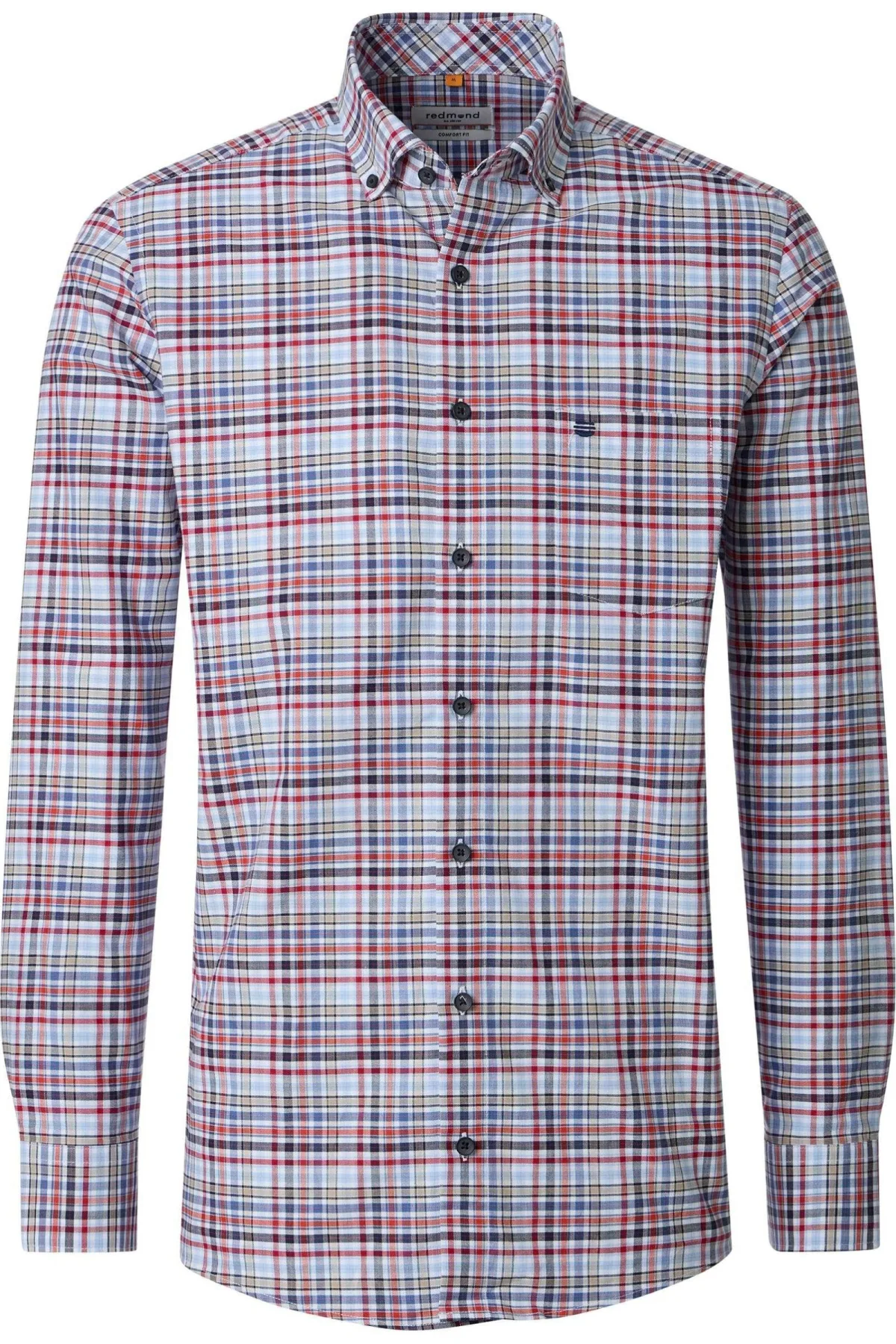 Redmond Casual Poloshirt lange mouw rood, Effen