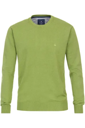 Redmond Casual Regular Fit Trui ronde hals groen, Effen