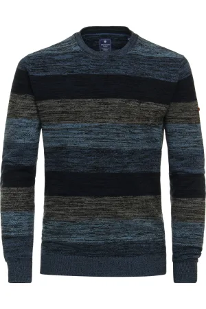 Redmond Casual Trui ronde hals blauw, Gestreept