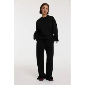 Refined Department wide leg high waist broek zwart