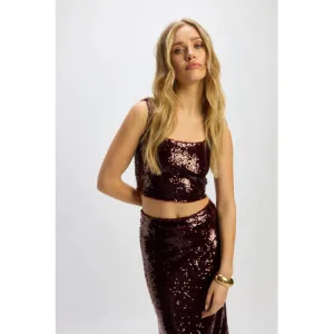 Refined Department X Vedder & Vedder top donkerrood met pailletten