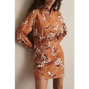 Reiss Floral Print Dress Rust