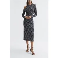 Reiss Velvet Print Midi Dress Black