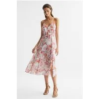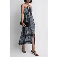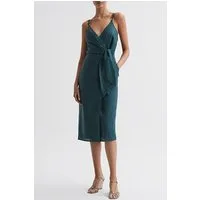 Reiss Elsie-linen Tie Side Midi Dark Teal