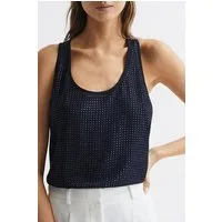 Reiss Brooklyn-embellished Tank Top Cami Navy