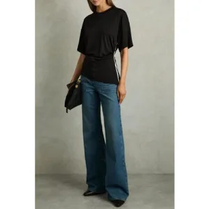 Reiss Printed Ruched Jersey Dress Neutral/navy