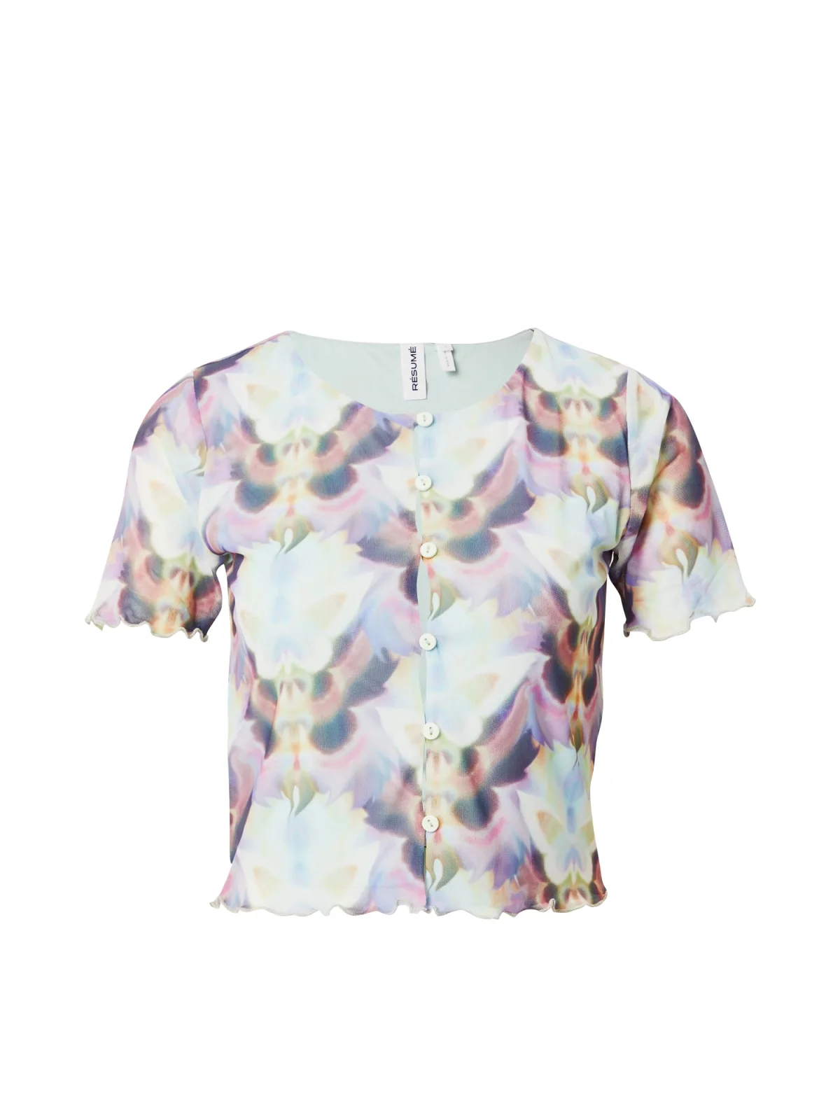 Résumé Shirt ‘Sia’ turquoise / pasteelgeel / donkerlila / oranje