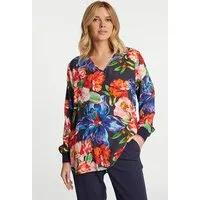 Rich & Royal Printed V-neck Blouse With Knit Cuffs Red Salsa