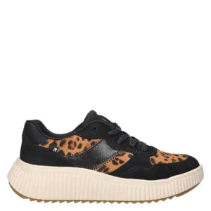 Rieker chunky sneakers met panterprint zwart/cognac