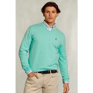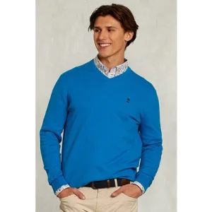 River Woods Normal Fit Basic Cotton V-neck Pullover Tropical Blue Mix Bl