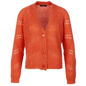 River Woods Loose V-neck Ajour Cardi Ls Orange