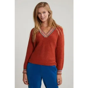 River Woods Orange Sweater Striped V-neck