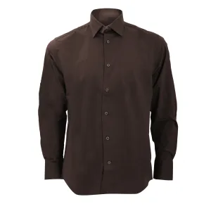 Russell Collectie Heren Lange Mouwen Gemakkelijk Onderhoud Aangepast Shirt (Chocolade)