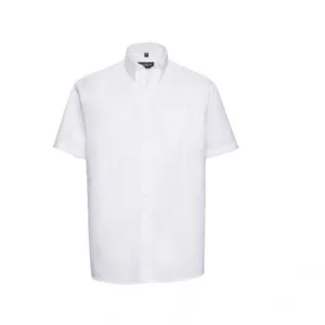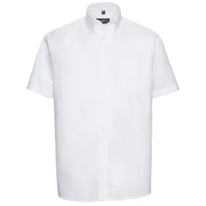 Russell Collection Heren Effen Oxford Easy-Care Overhemd met Korte Mouwen (Wit)