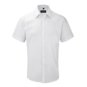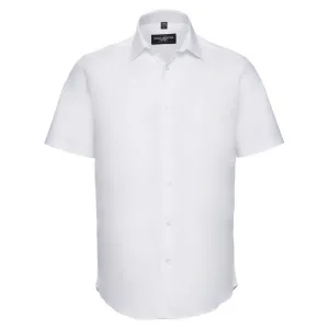 Russell Collection Heren Getailleerde Formele Overhemd met Korte Mouwen (Wit)