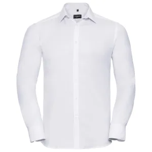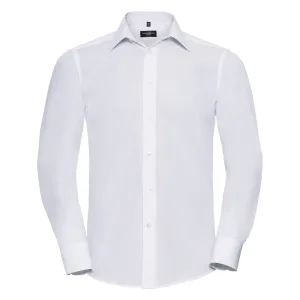 Russell Collectie Dames/Dames Lange Mouwen Poly-Katoen Gemakkelijk Onderhoud Gepaste Poplin Shirt (Wit)