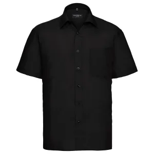 Russell Collection Heren Poplin Easy-Care overhemd met korte mouwen (Zwart)