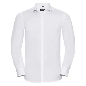 Russell Collection Heren Ultimate Stretch Formeel Overhemd met Lange Mouwen (Wit)