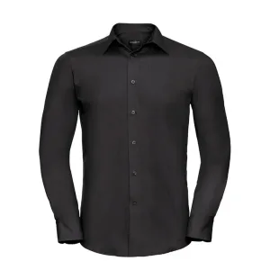 Russell Collection Heren Poplin Getailleerd Overhemd met Lange Mouwen (Zwart)