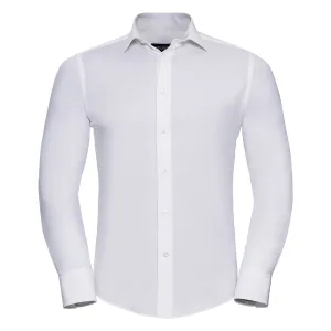 Russell Collection Herenhemd met lange mouwen en Easy-Care Fitted (Wit)