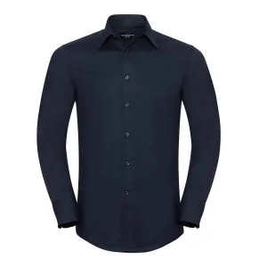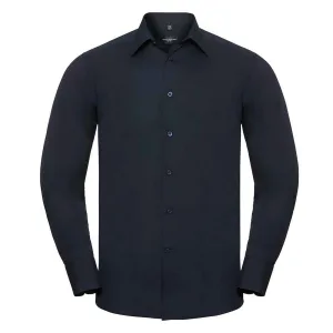 Russell Collection Heren Poplin Getailleerd Overhemd met Lange Mouwen (Franse marine)