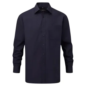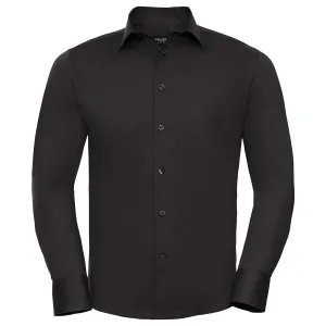 Russell Collection Herenhemd met lange mouwen en Easy-Care Fitted (Zwart)