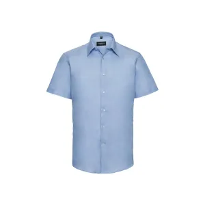 Russell Collection Heren Oxford Getailleerde Overhemd met Korte Mouwen (Oxford Blauw)