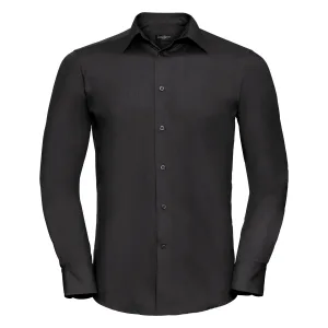 Russell Collection Heren Stretch Overhemd Met Lange Mouwen (Zwart)