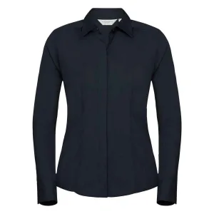 Russell Collection Dames/Dames Poplin met Lange Mouwen Formeel Overhemd (Franse marine)