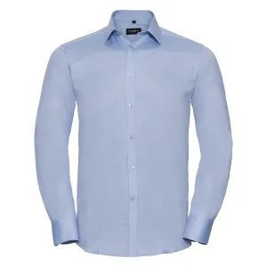 Russell Collection Heren Poplin Easy-Care Formeel Overhemd met Lange Mouwen (Bedrijfsblauw)