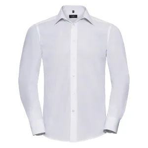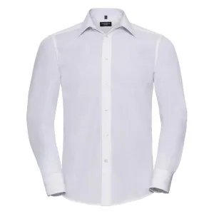 Russell Collection Heren Poplin Getailleerd Formeel Overhemd Met Lange Mouwen (Wit)