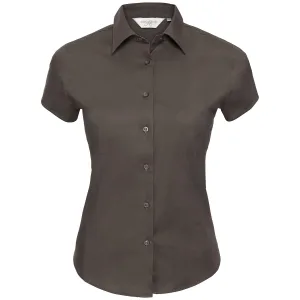 Russell Collection Dames/Dames stretch Easy-Care overhemd met korte mouwen (Chocolade)