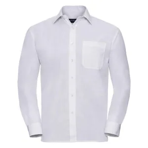 Russell Collection Heren Poplin Easy-Care Formeel Overhemd met Lange Mouwen (Wit)