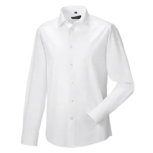 Russell Collectie Heren Lange Mouwen Gemakkelijk Onderhoud Aangepast Shirt (Wit)