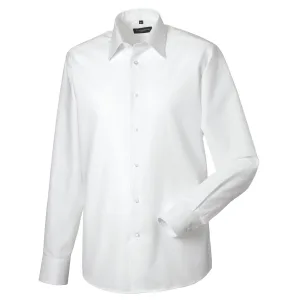 Russell Collection Heren Oxford Getailleerd Formeel Overhemd Met Lange Mouwen (Wit)