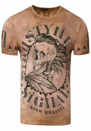 T-shirt met ronde hals en voorkant met opdruk